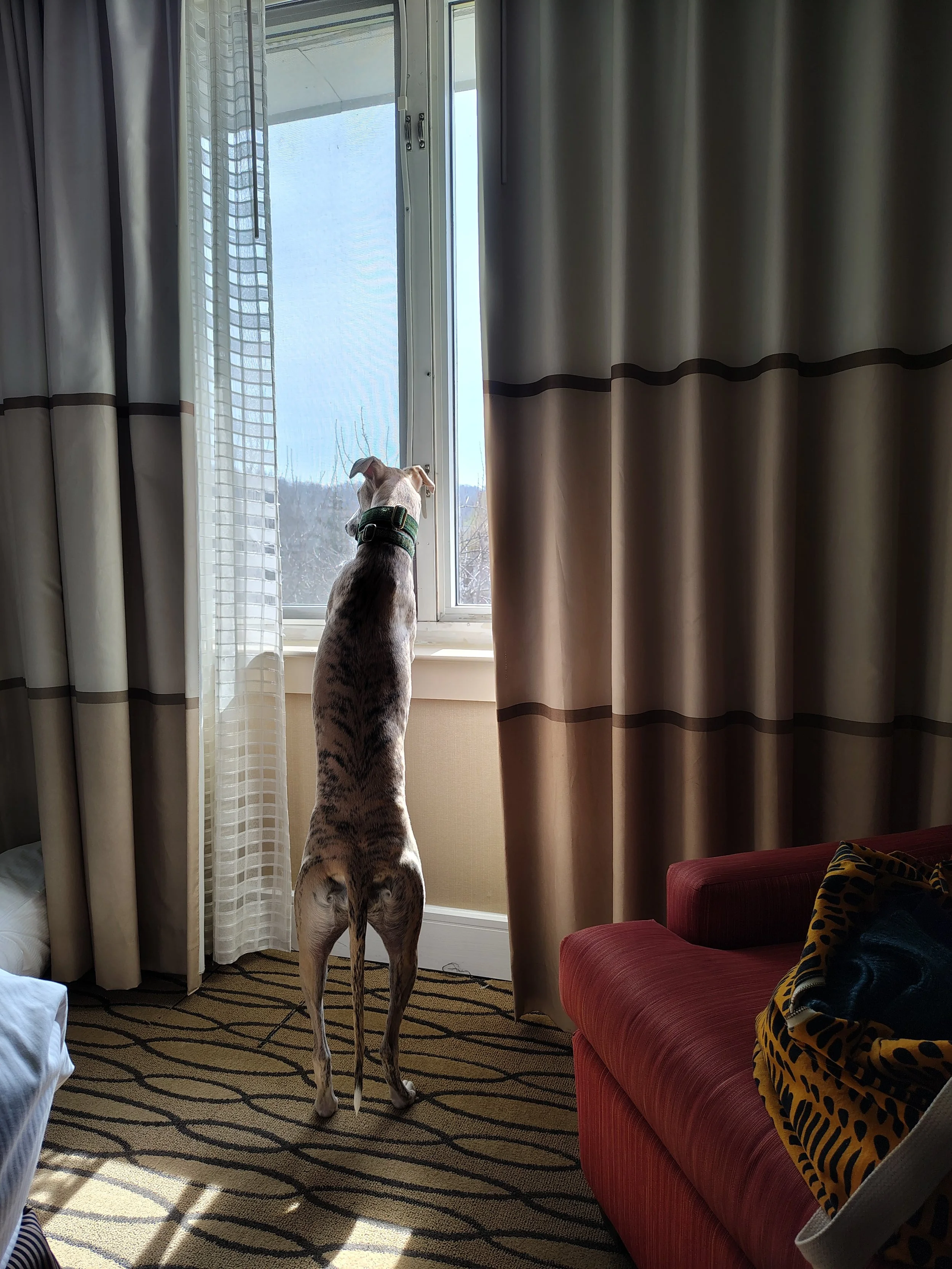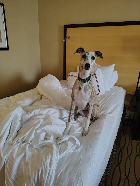 I brought my adolescent dog, Florence, with me. She had just turned two years old a few days before. I’d prepared her as best I could, but I was coming out of a serious chronic illness flare up just a week or so before the conference – so I wasn’t able to do all the training I had hoped to do prior.