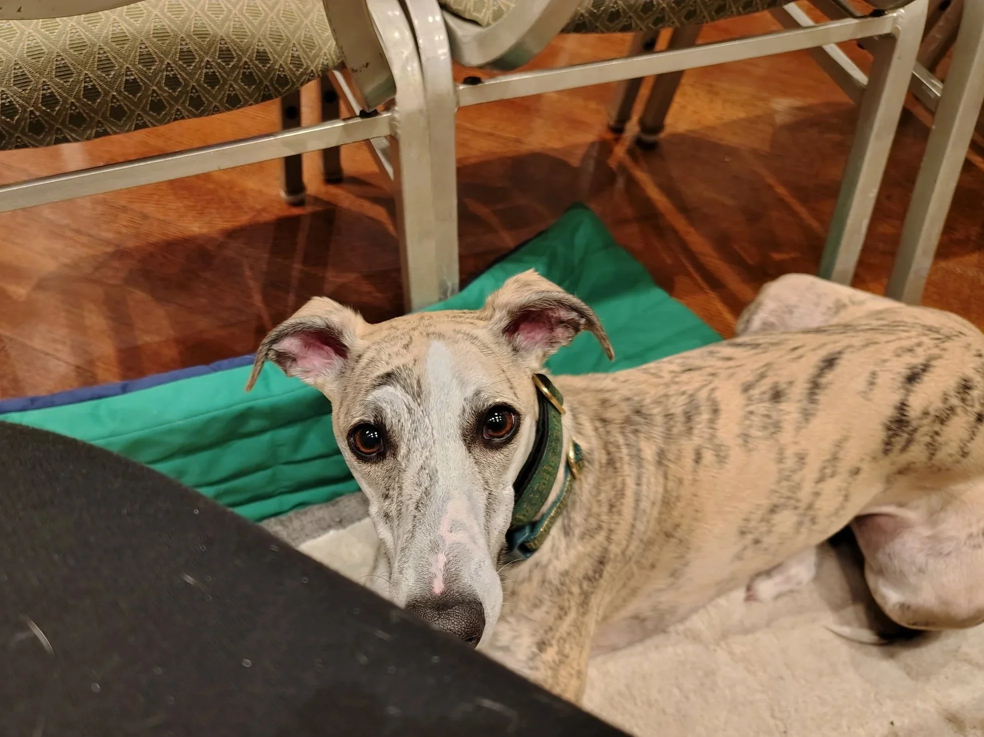 Florence trying very hard to settle on her mat.